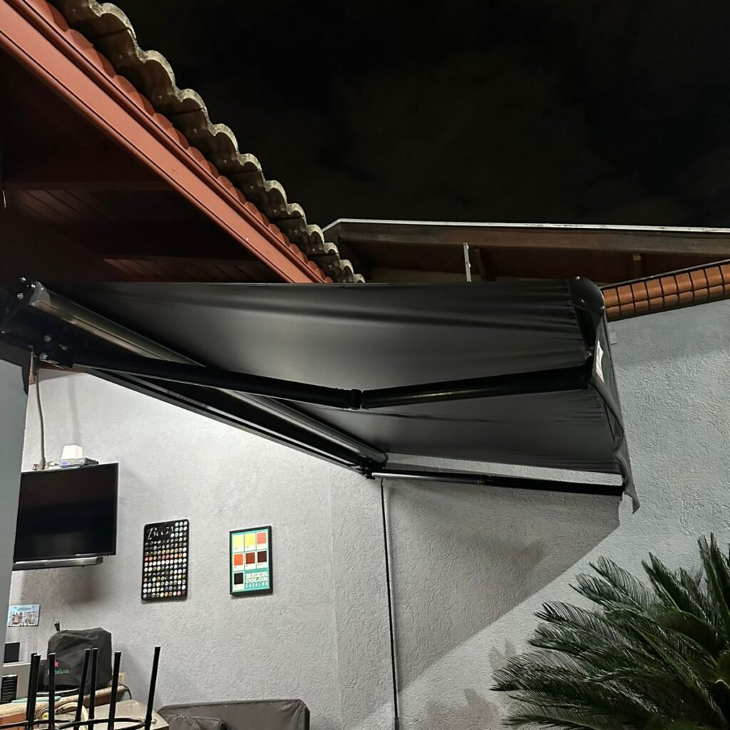 O toldo automatizado é equipado com motor elétrico e controle remoto, permitindo abrir e fechar facilmente. Esse modelo é mais indicado para áreas amplas e para quem busca conforto e praticidade no dia a dia.