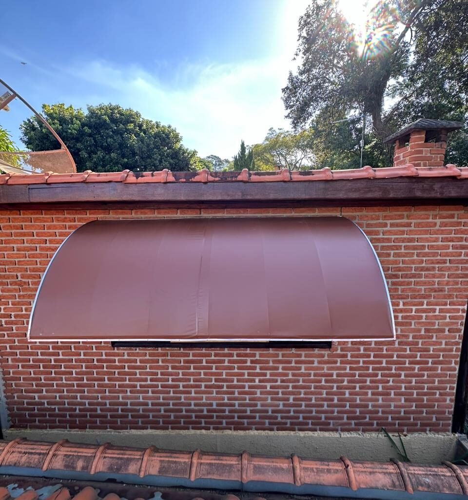 O modelo tradicional é o mais comum e versátil. Ele pode ser reto, inclinado ou curvo, dependendo da necessidade do local. É ideal para proteger entradas de lojas, janelas, áreas de descanso e varandas. Sua lona é tensionada sobre uma estrutura metálica fixa, garantindo proteção total e um visual clássico que combina com diferentes estilos de construção.